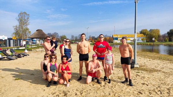 na opoczyńskiej plaży aby wspólnie zanurzyć się w chłodnej wodzie.