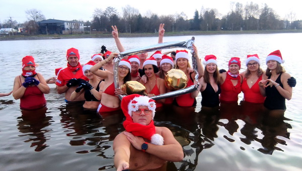 klubu, członkowie wznieśli toast lampką szampana. Zimowa kąpiel
