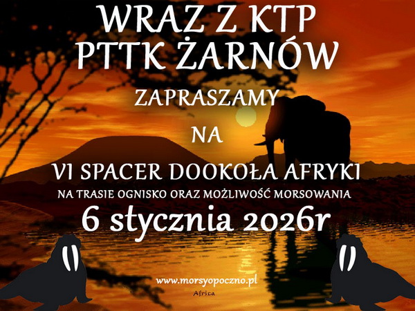 W imieniu KTP PTTK Żarnów, zapraszamy na V Spacer dookoła Afryki, który planowany jest w dniu 06.01.2025r.